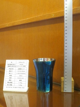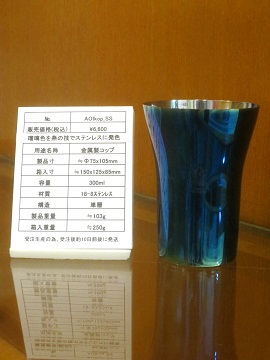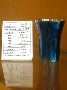 日本古来の伝統的な「銀いぶし」の技法でステンレスに瑠璃色を再現しました。