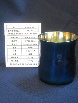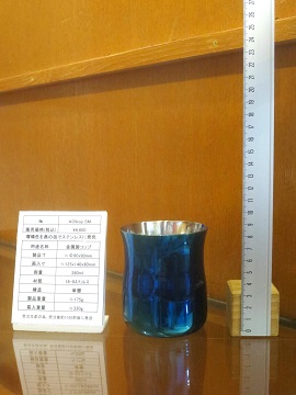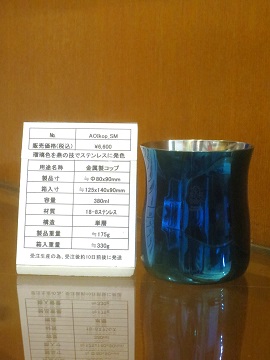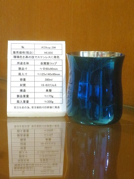 日本古来の伝統的な「銀いぶし」の技法でステンレスに瑠璃色を再現しました。