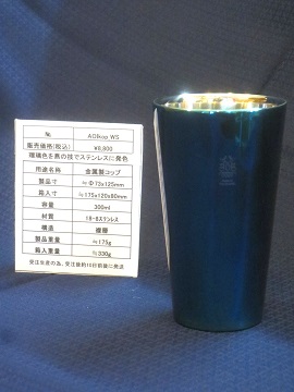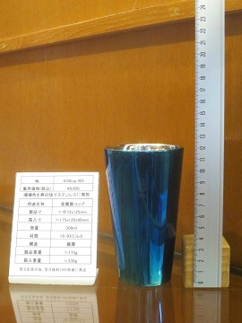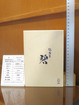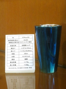 日本古来の伝統的な「銀いぶし」の技法でステンレスに瑠璃色を再現しました。