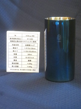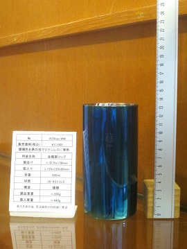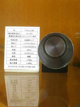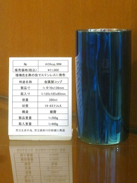 日本古来の伝統的な「銀いぶし」の技法でステンレスに瑠璃色を再現しました。
