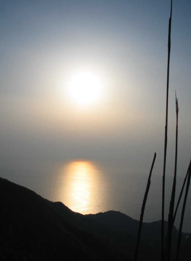 穏やかな夕陽 と 光る海