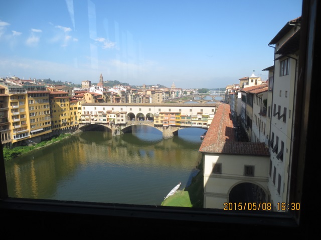 ↓ウフィツィ美術館から望むヴェッキオ橋