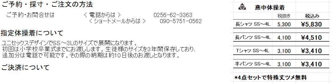 採寸のご予約・お問合せはお電話で TEL 0256-62-3363